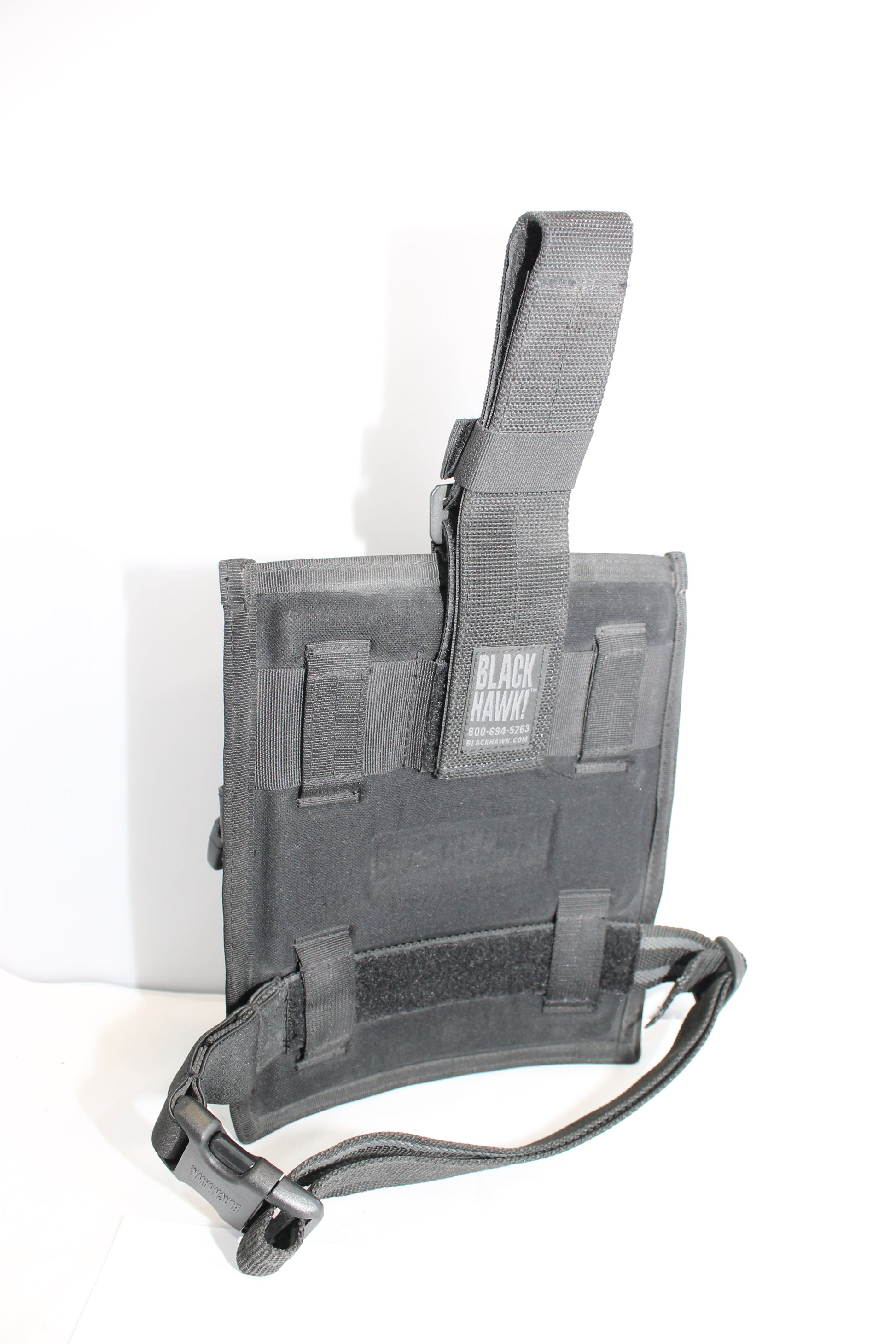 Van BlackHawk, een bovenbeen magazijn houder. Bedoeld voor de langere 9 mm magazijenn. Kwalitatief zeer goed gemaakt en dit model geniet de voorkeur van vele eenheden.