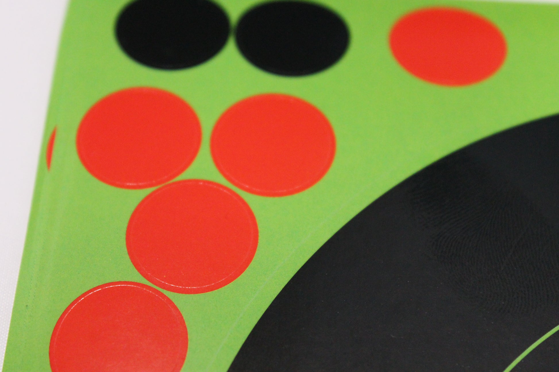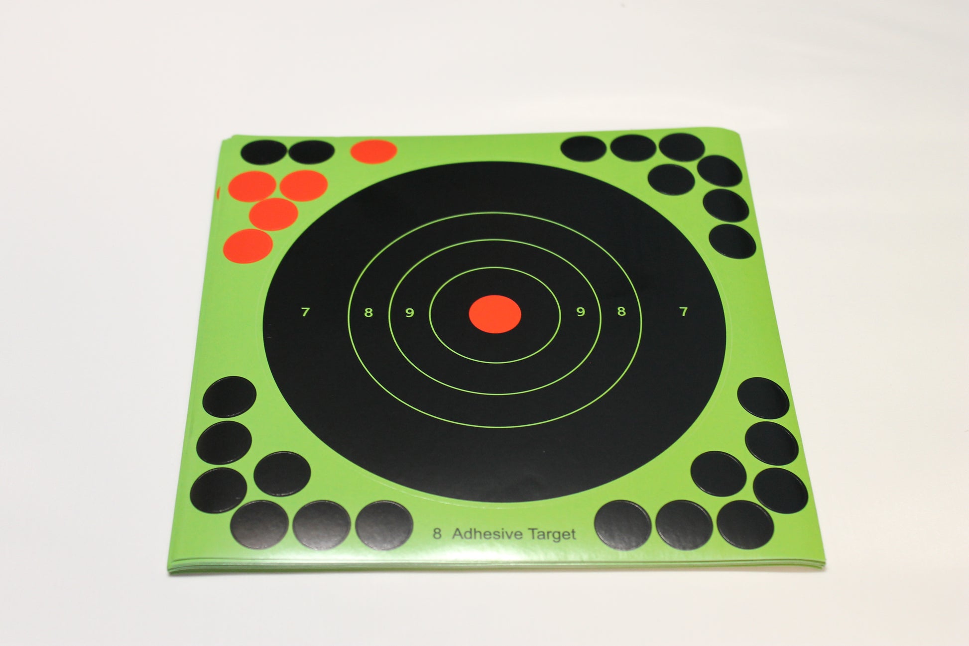 De bekende splatter schijven die een treffer zeer duidelijk laten zien, ook van grotere afstand. De diameter van de circel is 16,5cm, het gehele vierkant is 20,5 cm x 20,5 cm. Zelfklevend, per 20 schijven verpakt. Extra splatter ronde klevers voorzien om treffers af te kunnen plakken en toch hetzelfde splatte reffect nog te hebben.