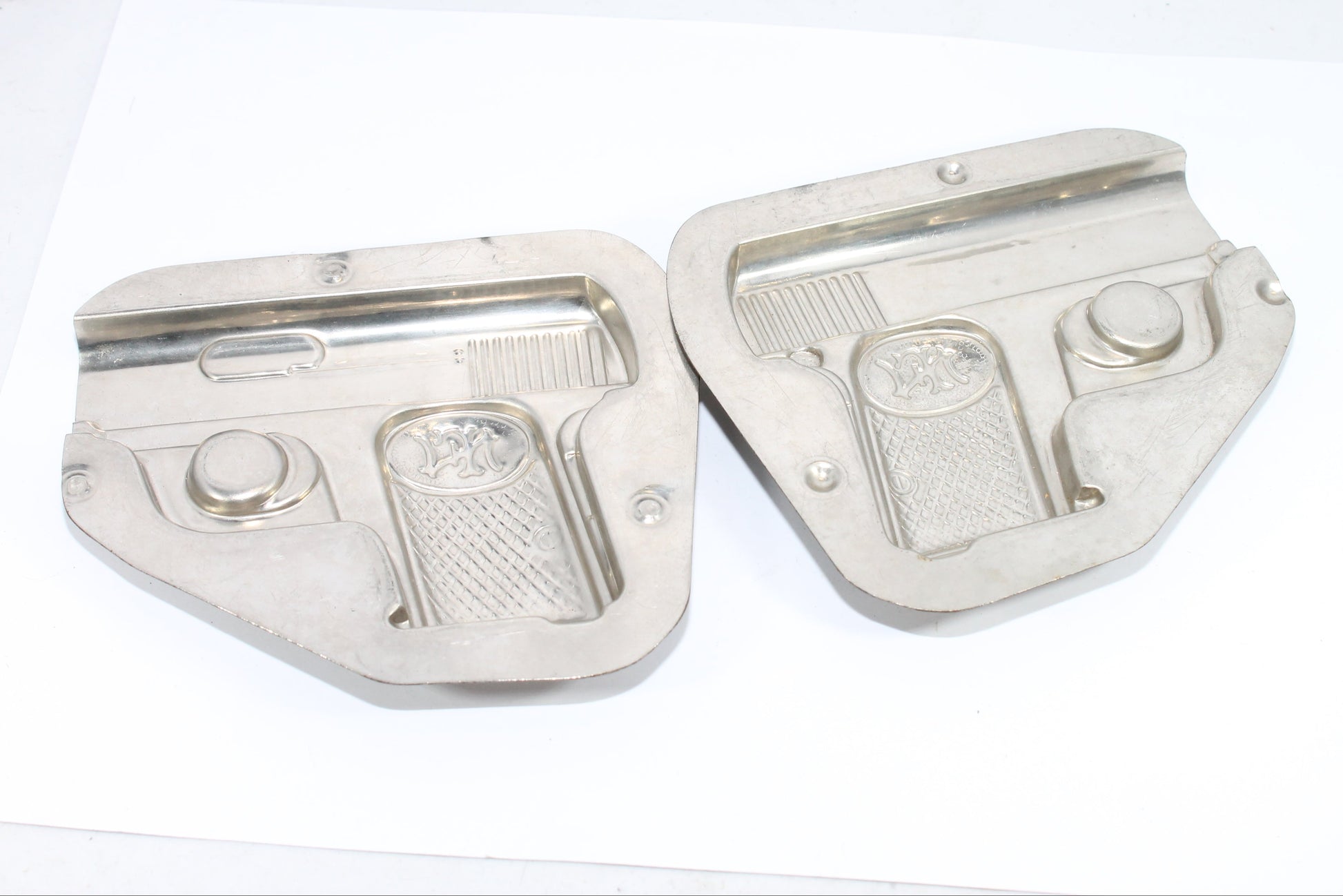 Een zeer zeldzame, genummerde, bakvorm voor gebak en/of chocolade in de zeer gedetailleerde vorm van een FN pistool. Absoluut in perfecte staat.