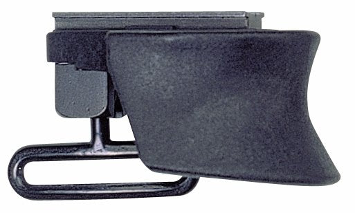 Anschutz anatomisch gevormde handstop voor montage in de standaard UIT rail. Meer comfort dan bij de 'ronde' uitvoeringen. Volledig instelbaar voor zowel links als rechtshandigen. Gemaakt van metaal en polymer. Riembeugel uiteraard van staal om de krachten te houden van een aangespannen riem.