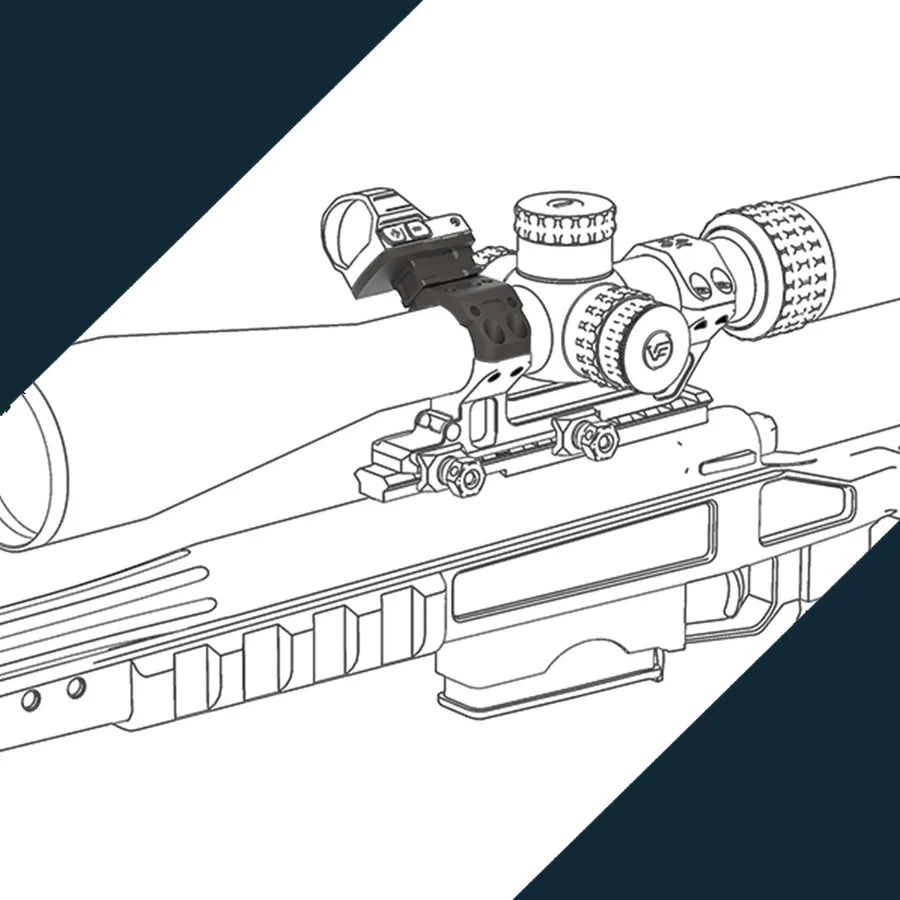 De ideale manier om , via de onderste helft van de ring een mount plate toe te voegen voor een Red Dot vizier. De red dot kan op de bovenzijde of schuin links of rechts gemonteerd worden. Complete set. Geschikt voor 30 mm buis.