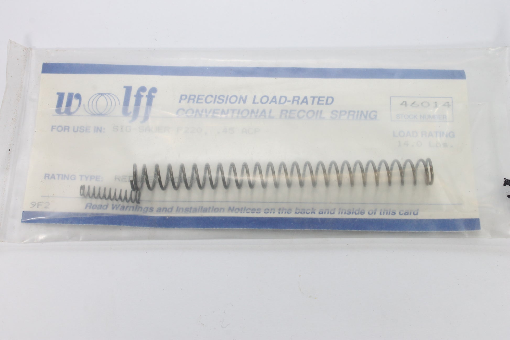 Wolff SIG P220 precision load rated conventional recoil spring reduced power, 14.0 Lbs. Een extra power slagpin veer is inclusief.